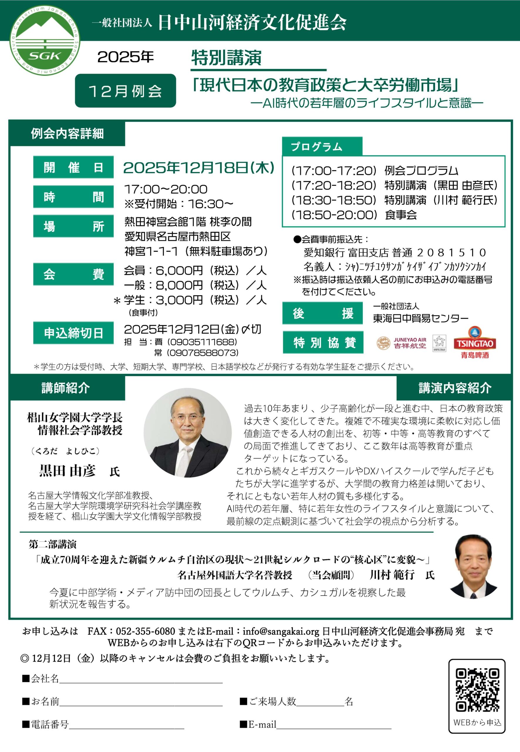 ● キャンセルの場合は必ずご連絡ください。 ● 2025年12月12日(金)以降のキャンセルは会費のご負担をお願いいたします。